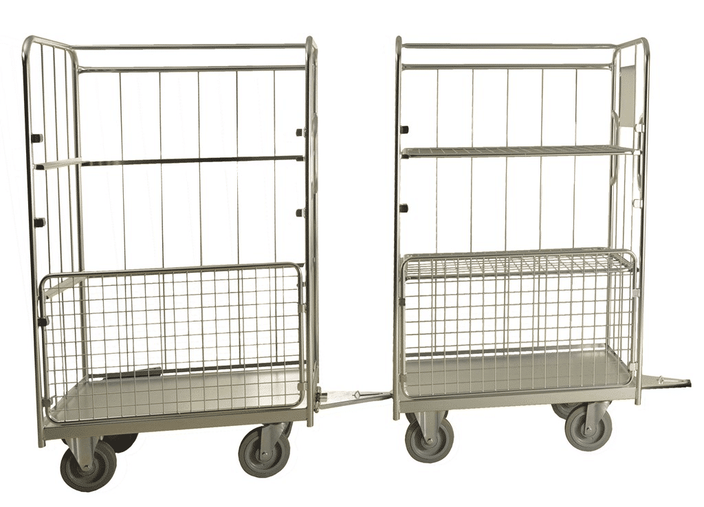 Helsvetsad allroundvagn för många användningsområden. De praktiska hyllplanen kan även användas som grindar. Vagnen kan med fördel användas till vår elektriska dragare, KM360TMX Konga Mover.