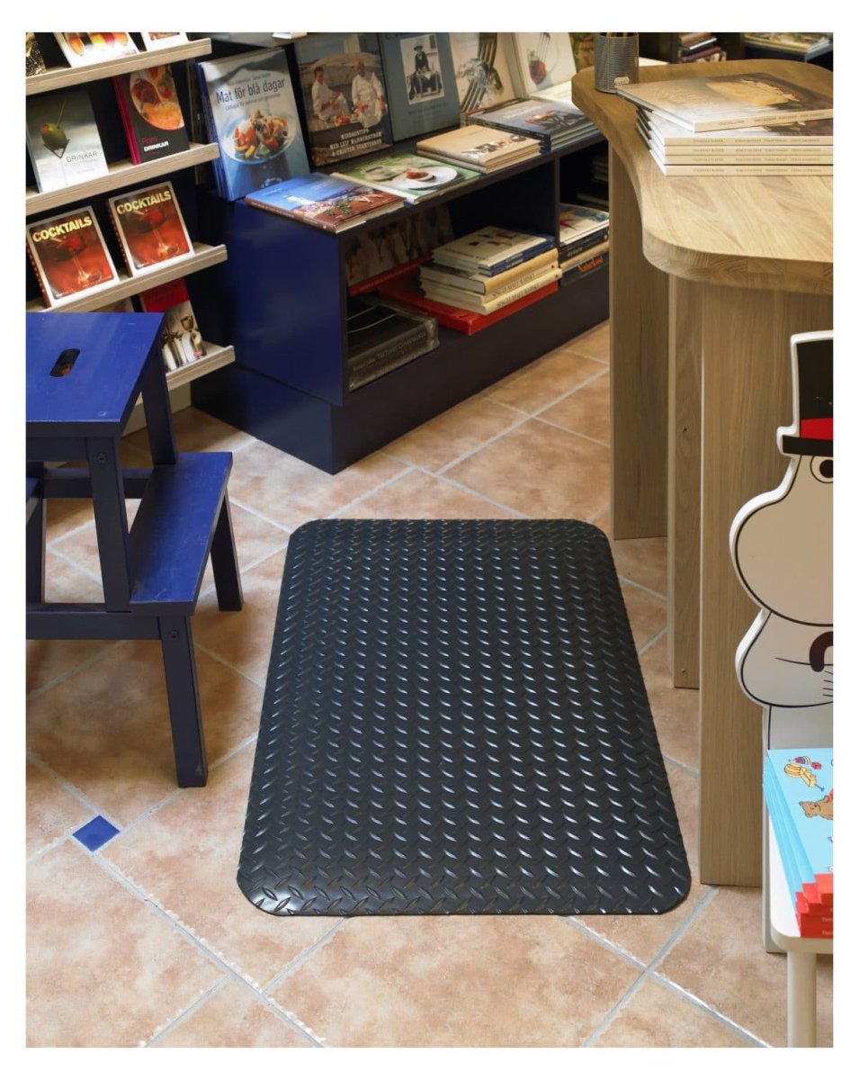 Mycket slitstark arbetsplatsmatta med durkmönstrat ytskikt för bästa halksäkerhet även vid vätskespill. Mjuk och dämpande undersida i polyvinyl ger bra ergonomi och komfort. Ytskikt och undersida är sammansmälta vilket bidrar till bästa hållfasthet och att miljöfarligt lim kan undvikas. Fasade kanter minskar snubbelrisken och underlättar för att köra vagnar över mattan.