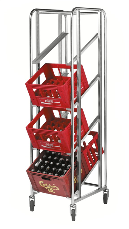 Backvagn anpassad för 4 danska läsk/ölbackar. Skenorna kan monteras rakt eller lutande efter behov. Levereras omonterat. Elförzinkad 25mm stålrör. Plats för 4st backar4st 100mm hjul. Belastning 150kg