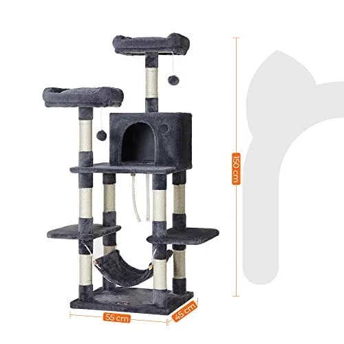 Cat Tree med Pompoms, Katttorn 150 Cm, Rökgrå