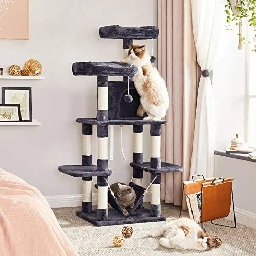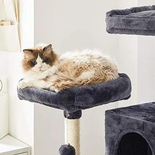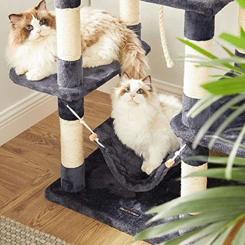 Cat Tree, Cat Condo med Hängmatta, Cat Tower, Smoke Grey