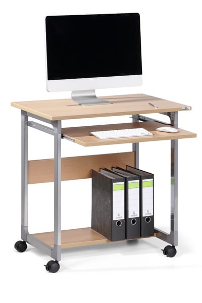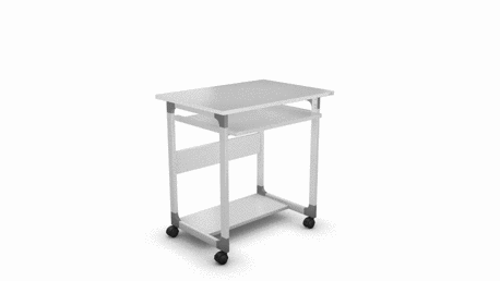 Flyttbar datorhurts med två hyllplan och en utdragbar tangentbordshylla. Höjden på tangentbordshyllan kan justeras mellan 550-630 mm för en bekväm arbetsställning. Hurtsen är mobil och utrustad med fyra hjul. Mått översta hyllan: 750 x 534 mm (B x D). Mått tangentbordshylla: 588 x 420 mm (B x D). Mått bottenhylla: 610 x 272 mm (B x D). Totala mått: 770 x 750 x 534 mm (H x B x D).FH= Fixed Heights