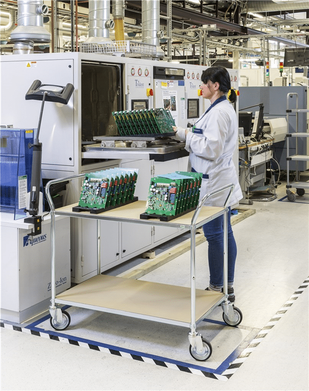 Plåtvagn i 2 plan. Rejäla 125mm hjul vilket gör den lätt att köra. Finns som standard i 6 modeller. Levereras omonterat. Elförzinkad med ESD hyllorHöjd till översta hyllplan 760 mmAvstånd mellan hyllplan 530 mm4 länkhjul 125 mmBelastning: 250 kg