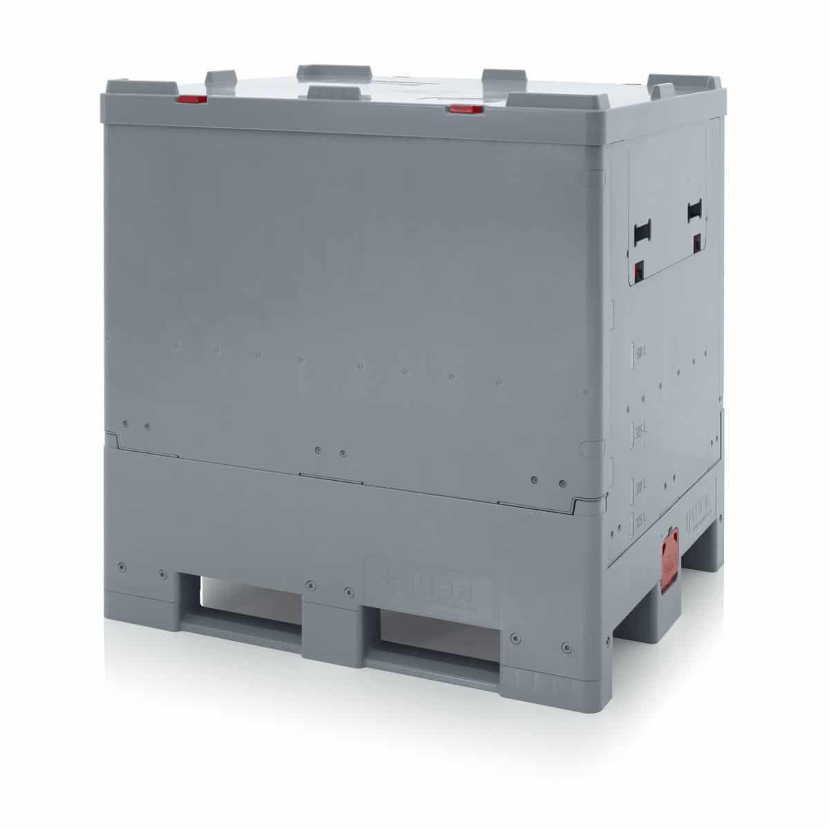 Fällbar pallcontainer för distribution av ex. nödvatten vid krissituationer. Behållaren används med en innerpåse (bag-in-box) som fylls med vatten för vidare transport till drabbade områden. Levereras med lock. Liner/ innerpåse köps separat.
