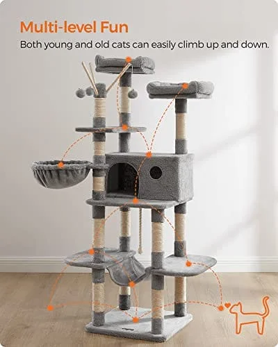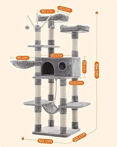 Feandrea Kattträd Katt klösträd / klösmöbel , XXL, 164 cm, ljusgrå