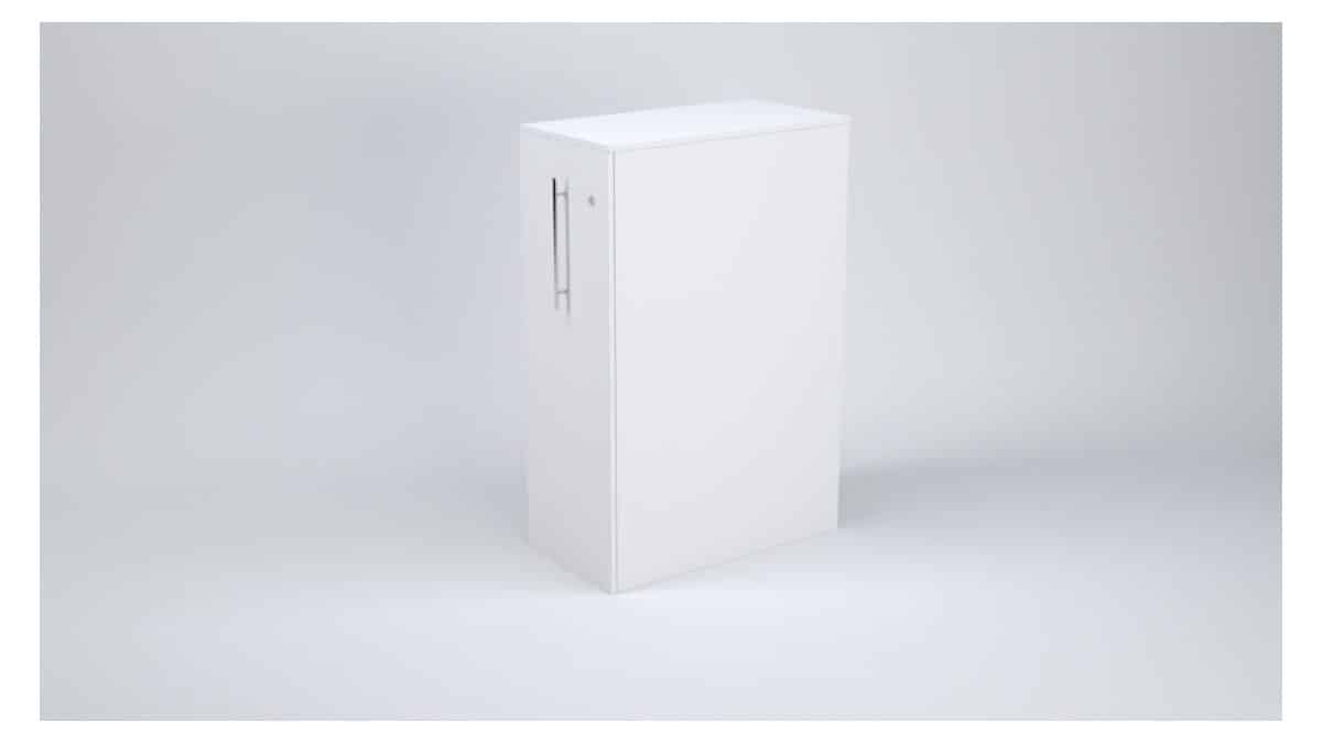 Snygg, enkel och väldigt praktisk. Låsbart förvaringsskåp i vitlaminat med utdrag från kortsida. 3 hyllplan med plats för massor av pärmar (A4). Mått: 800x400x1234 mm. Utdrag åt höger!