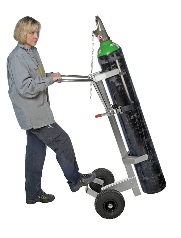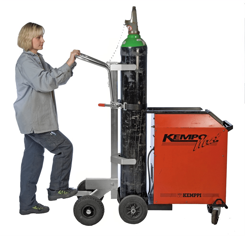 Ergonomisk gastubskärra som underlättar bytet av tub på svetsen. Mycket enkel att använda, inga tunga lyft. Elförzinkad ergonomisk gaskärra. Förenklar lyften väsentligt. För gasflaskor/tub diameter 235 mm/50 l-tub.