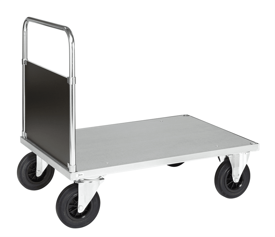 Snygg och smidig gavelvagn. Finns med en eller två gavlar och med eller utan broms. Serien innehåller plattformsvagn, bordsvagn, gavelvagn, lådvagn och skivvagn. ElförzinkadHöjd till lastplan 260 mmBotten med 2 mm galvaniserad stålplåtGavelskiva i laminat, höjd 400 mmByglar 25 mm stålrör2 fasta, 2 länk massiva gummihjul 200 x 50 mmBelastning: 500 kg