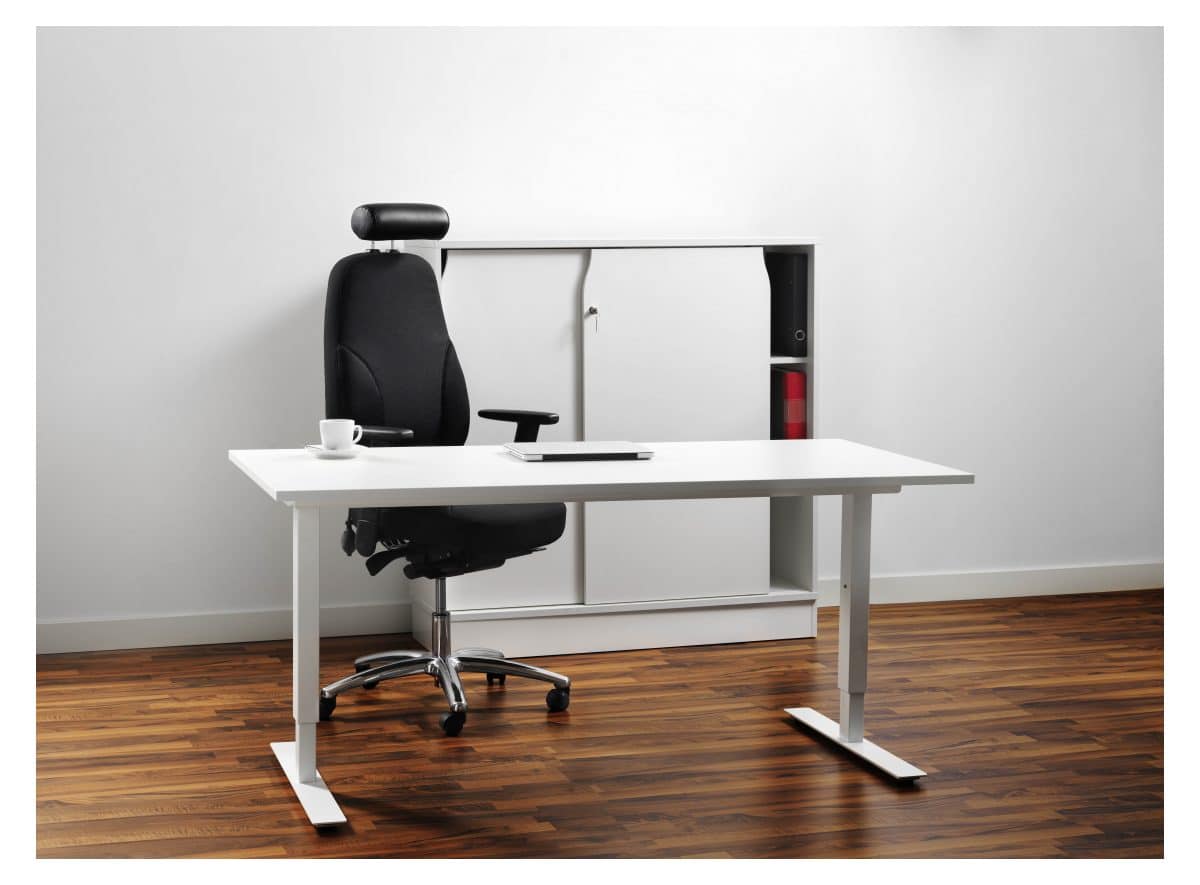 Stabilt elskrivbord med en motor, justerbar ram.