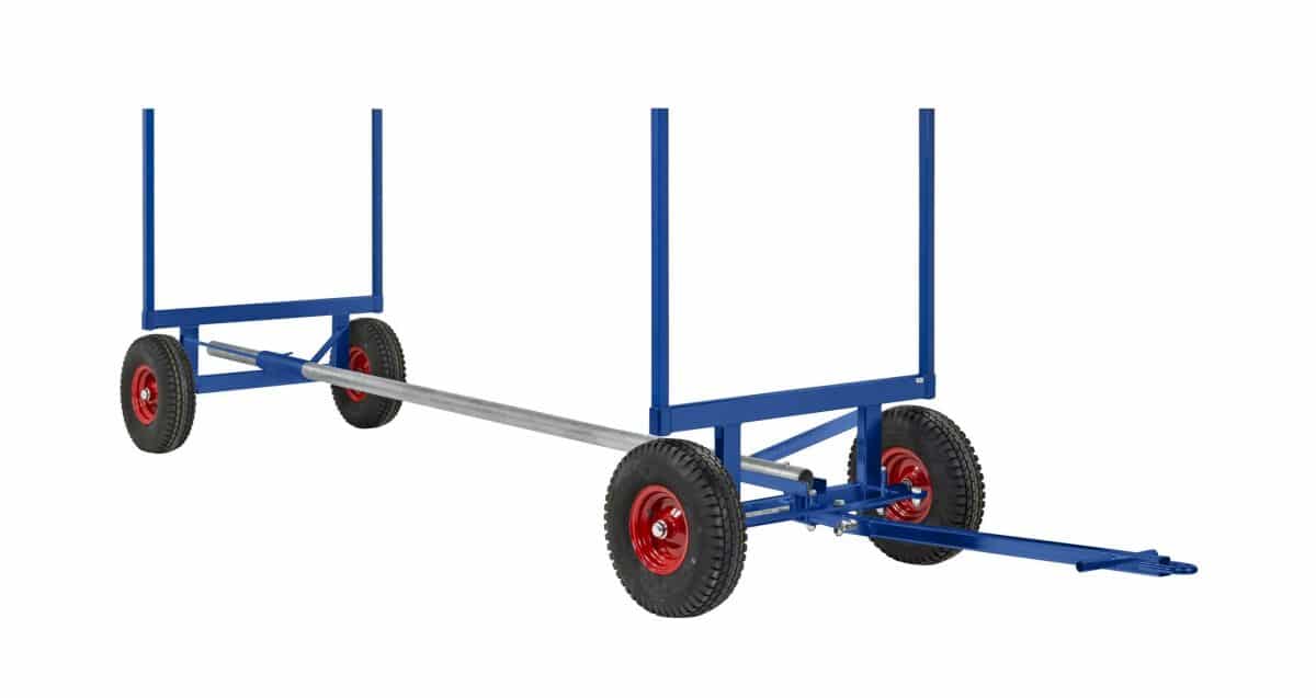 Långgodsvagn från Svenska Konga Mek som är anpassad för långt och tungt gods, flera justermöjligheter vilket gör den smidig i alla miljöer. Levereras omonterad.