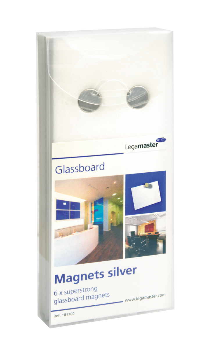 6 st superstarka magneter för glastavlor. Färg: Silverkrom Mått: 12×7 mm.