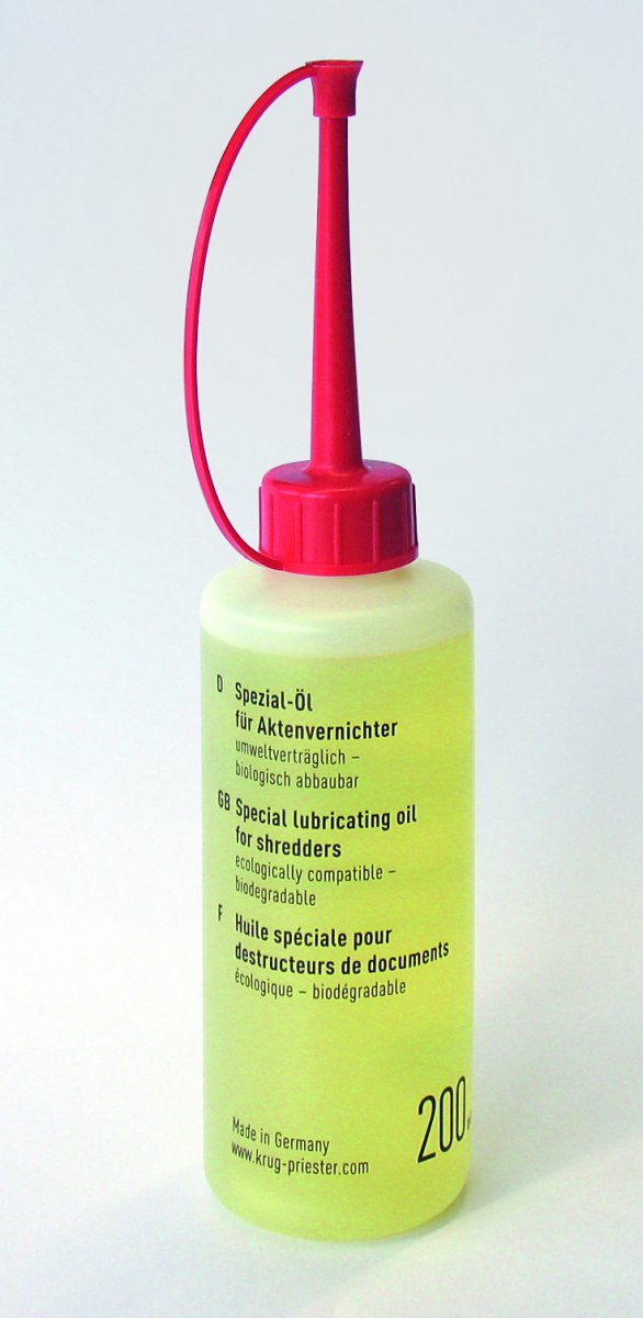 Rekommenderad olja för smörjning och rengöring av skärhuvudet i er dokumentförstörare. Passar alla märken!