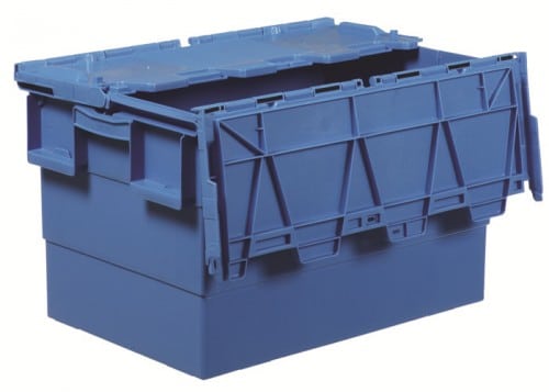 Transportback med gångjärnslock. Backarna klarar distribution av flera olika slags varor. Backarna går att säkerhetsplomberas.