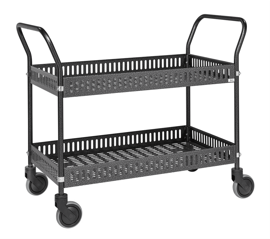 Rullvagn med hög sarg i 2 plan. Snygg design som gör vagnen lätt trots sin storlek. Lätt att hålla ren och torr. Finns som standard i 4 modeller. Levereras omonterad. Pulverlackerad eller elförzinkad.