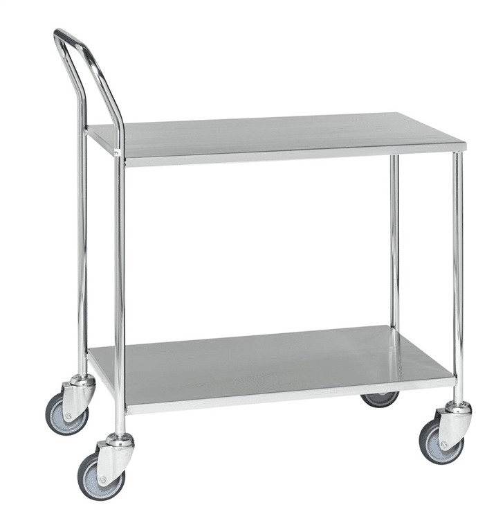 Helsvetsad elförzinkad storköksvagn med handtag.Hyllplan klädda i 1 mm rostfri plåt. Den helsvetsade vagnen är lätt att hålla ren och hygienisk. Vagnen minskar bakterietillväxt pga avsaknaden av skarvar i konstruktionen.