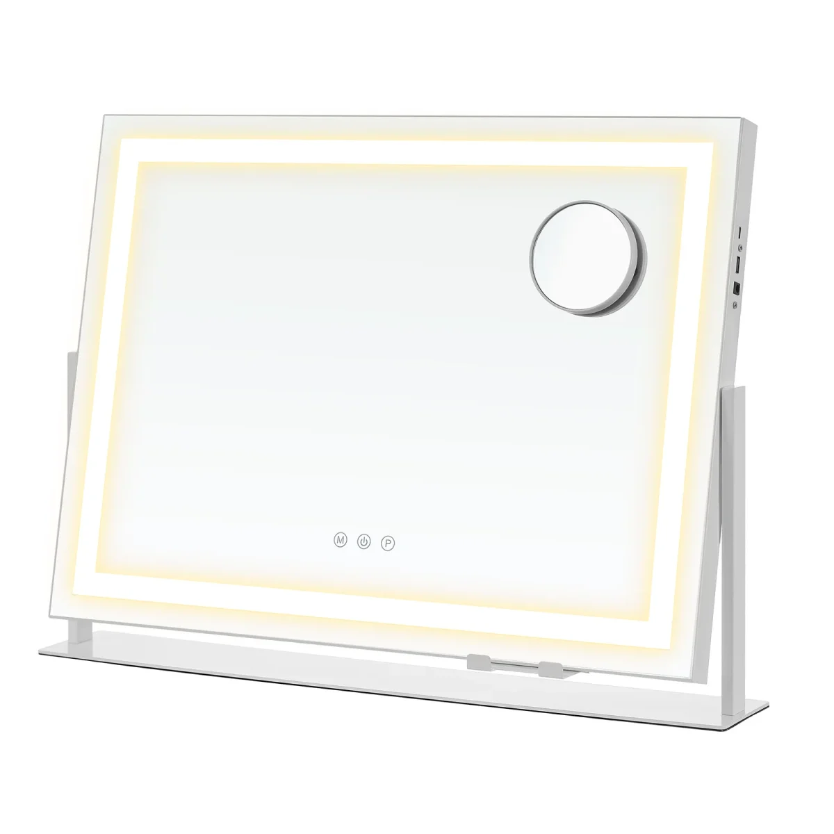 Stor justerbar spegel: Denna sminkspegel mäter 58 x 43 cm och roterar 360° för att ge den perfekta betraktningsvinkeln, oavsett höjden på ditt sminkbord. Den halkfria basen håller spegeln säkert på plats.