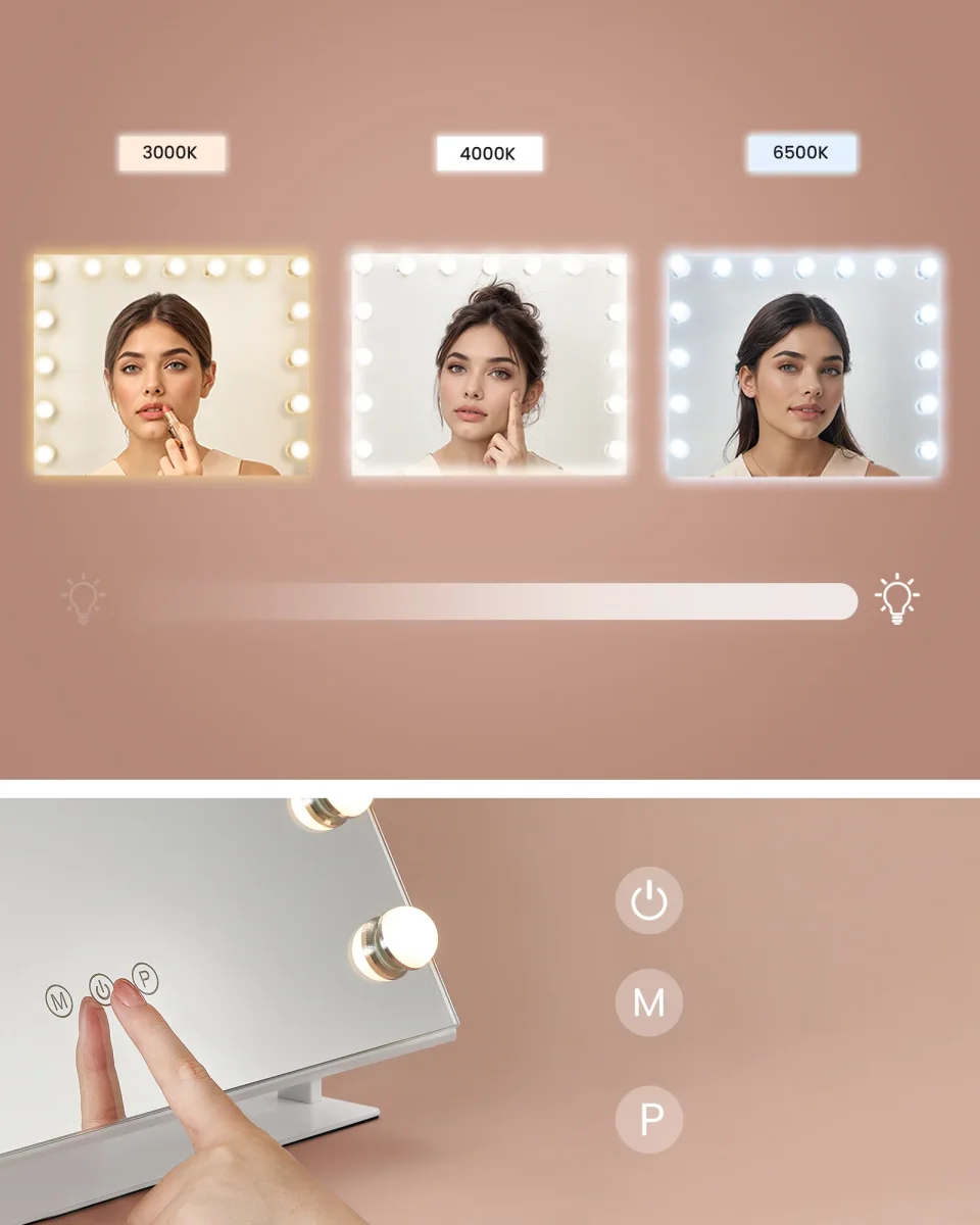 LED-lampor: 3 färgtemperaturer (naturligt, kallt och varmt ljus) med justerbar ljusstyrka för att möta alla dina behov. Pekskärmsknapparna släcks när spegeln är avstängd, vilket förhindrar störningar under natten.