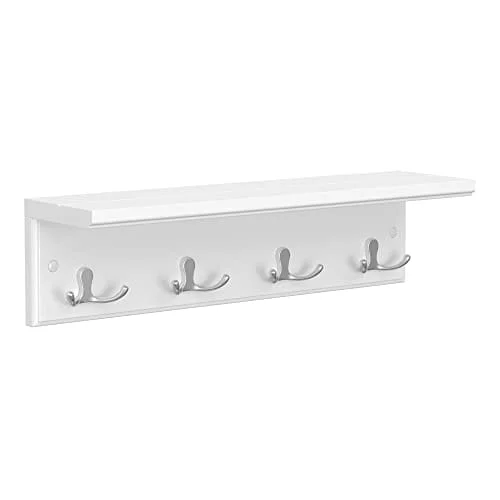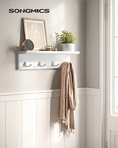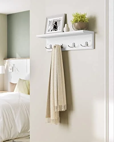 Songmics väggmonterad klädhängare med 4 metallkrokar, väggkrokar i trä för sovrum, entré, badrum, kök, vardagsrum, vit LHR42WT