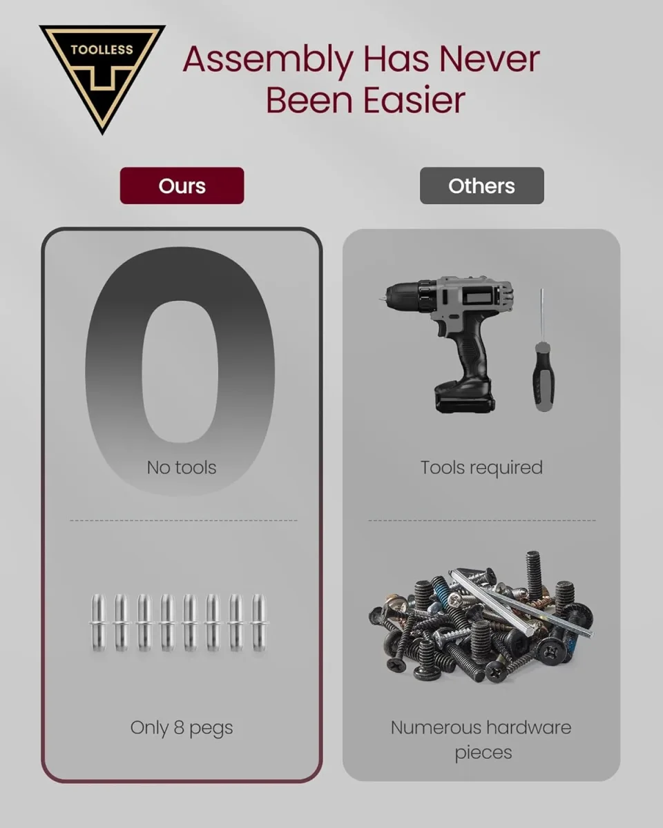 【SUPERSNABB, VERKTYGSFRIA MONTERING】Montera detta TV-bänk på bara cirka 10 minuter – inga verktyg behövs. Med inbyggda sammankopplade kontakter klickar panelerna helt enkelt ihop. Säg adjö till timmar av tråkig montering eller fumlande med många tillbehör!