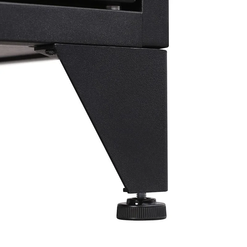 Ställ din TV på bordsskivan och förvara böcker och media på de två förvaringshyllorna nedan. Din samling inuti skåpet kommer delvis att vara dold och delvis synlig bakom metalldörrarna i mattsvart nät, vilket gör att de ser mer attraktiva ut.