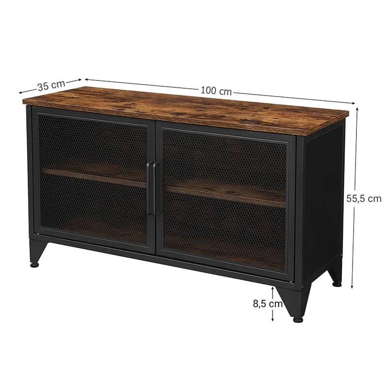 Förvaringsskåp, metallskåp, skänk med 2 dörrar, stålram, rustik brun och mattsvart