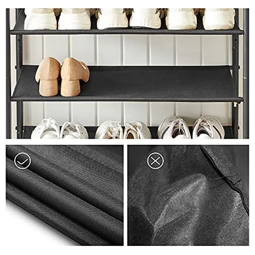 Vasagle Skoställ 5-lagers med 4 tyghyllor och topp, Stålram, Rustik Brun och Svart